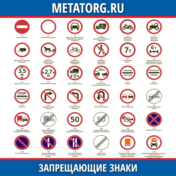 Таблица 2. Запрещающие знаки, изготовленные по ГОСТ P 52290-2004.